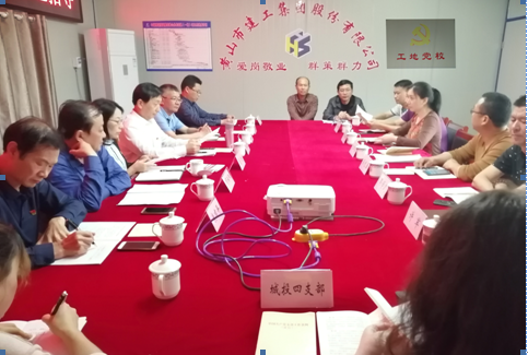 “工地建黨校、黨課進(jìn)工地”,2019年4月26日下午市委組織部非公工委朱永進(jìn)書記在百忙之中蒞臨黃山市建工集團(tuán)承建的中儲(chǔ)糧銅陵直屬庫(kù)黃山分庫(kù)工地指導(dǎo)工作,并在我公司“工地黨?!睘榇蠹疑狭艘惶谩吨袊?guó)共產(chǎn)黨支部工作條例(試行)》專題黨課。參加黨課學(xué)習(xí)的有:黃山市建工集團(tuán)黨總支班子成員及下屬機(jī)關(guān)、第一、第二、第三黨支部書記;市城投集團(tuán)黨委領(lǐng)導(dǎo)及城投公司第四黨支部黨員領(lǐng)導(dǎo)干部;項(xiàng)目工地全體黨員、入黨積極分子約30人。