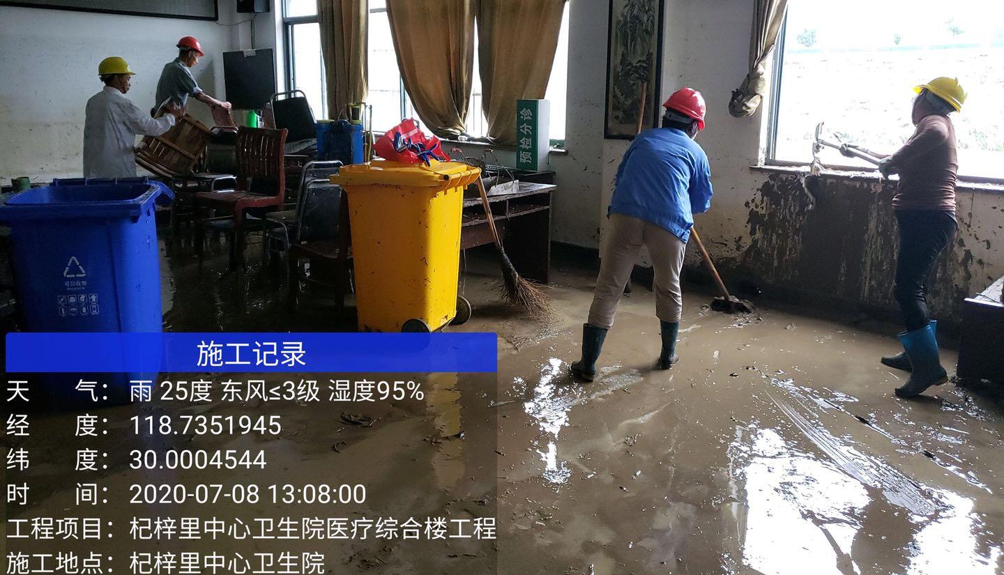 2020年7月7日,由于持續(xù)多日的降水,黃山市歙縣遭遇五十年一遇的大洪水,山洪暴發(fā)后,歙縣杞梓里中心衛(wèi)生院受災嚴重。8號-12號黃山建工集團歙縣杞梓里中心衛(wèi)生院醫(yī)療綜合樓工程項目部,自發(fā)組織人員幫助衛(wèi)生院進行災后清理等志愿服務。