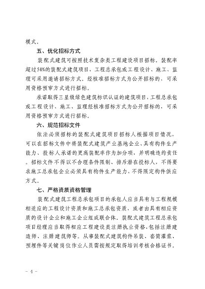 關(guān)于加強(qiáng)裝配式建筑項(xiàng)目實(shí)施及招標(biāo)投標(biāo)活動管理有關(guān)工作的通知